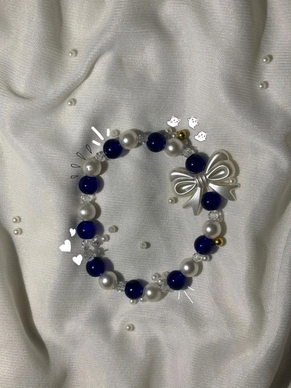 Design: Alternating Deep Blue, Crystal, and Pearl Beads with a Floral Bow Center 🎀