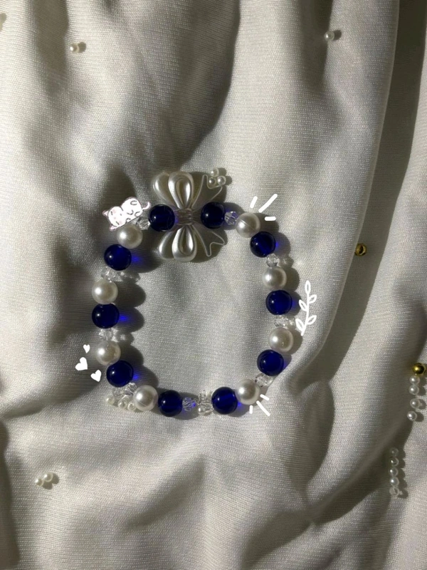 Catalog Name: Elegant Blue & Pearl Beaded Bracelet 💙